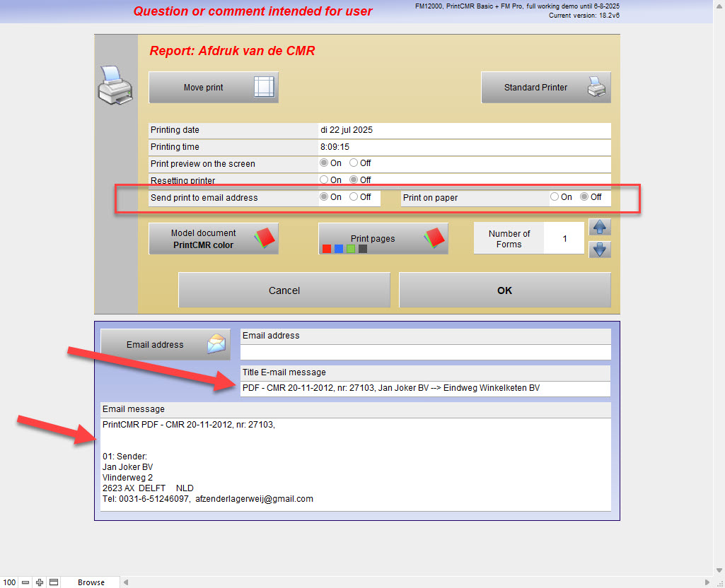 Met de komst van versie 18.2v6 geeft PrintCMR meer informatie mee voor de gebruiker.