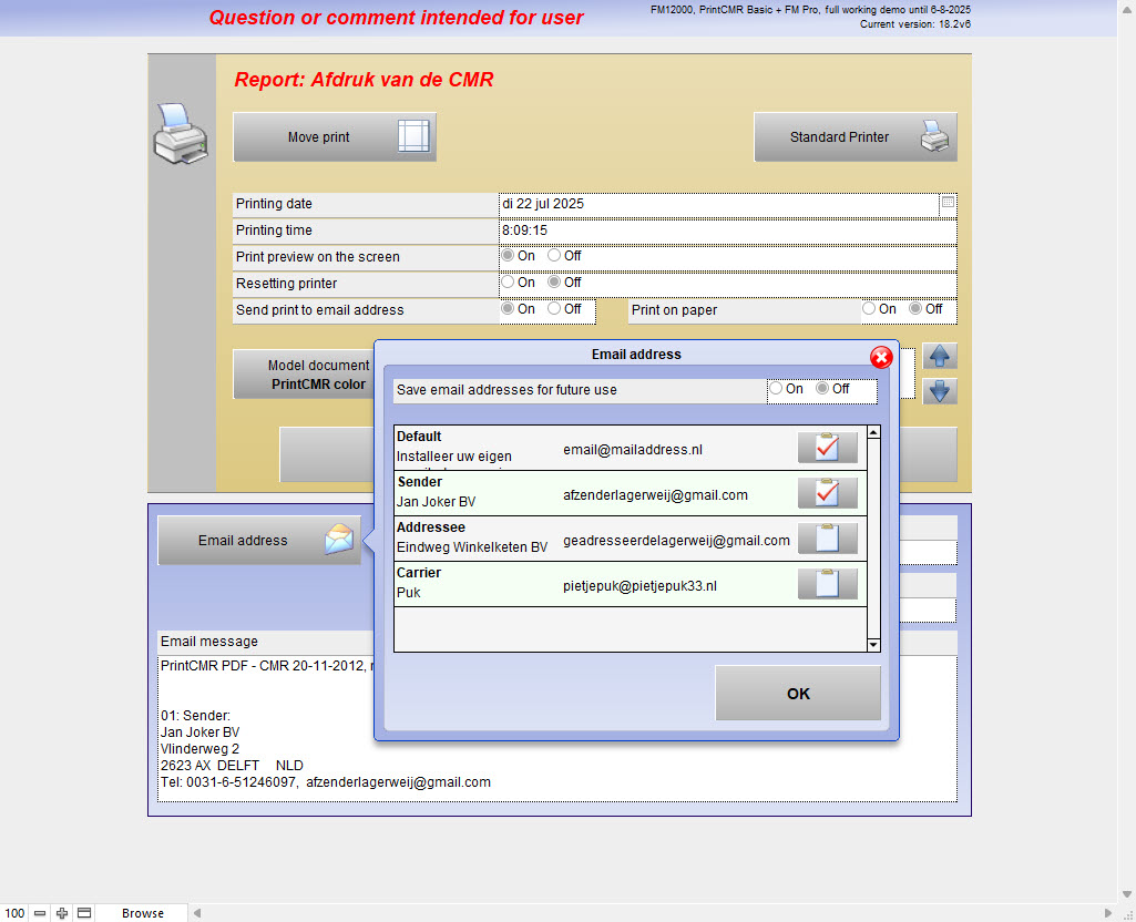Tijdens het afdrukken van een vrachtbrief hebben de FM PRO gebruikers al enige tijd de optie om automatisch een email aan te maken, voorzien van een PDF met daarin de gekozen afdruk.